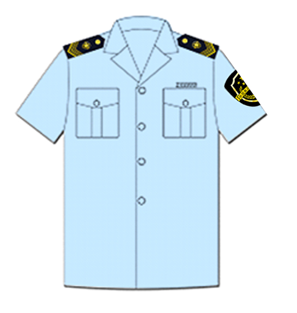 說(shuō)明:襯衫為滌棉混紡面料,顏色為深藍(lán)色,短袖襯衫為小翻領(lǐng),單排四粒扣,兩個(gè)明口袋。長(zhǎng)袖襯衫為豎領(lǐng),單排五粒扣,兩個(gè)明口袋;西服簡(jiǎn)褲或裙子為毛滌混紡面料。
