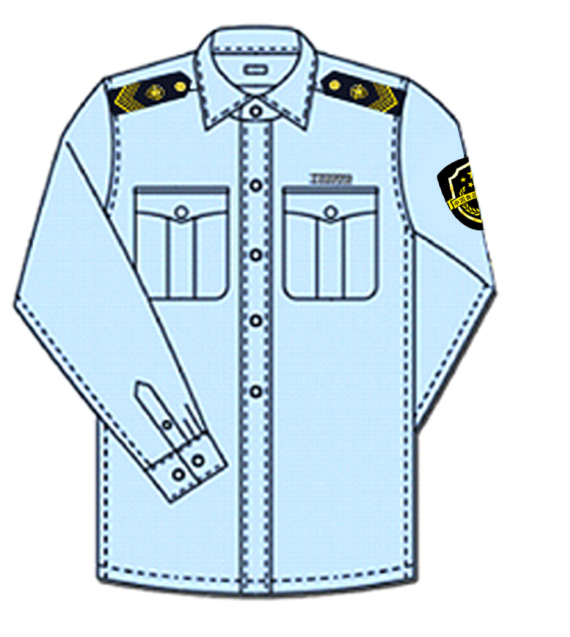 說明:襯衫為滌棉混紡面料,顏色為深藍色,短袖襯衫為小翻領(lǐng),單排四???,兩個明口袋。長袖襯衫為豎領(lǐng),單排五???,兩個明口袋;西服簡褲或裙子為毛滌混紡面料。